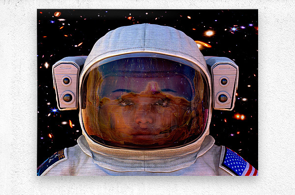ABOUT THIS ARTWORK: FEMALE SPACE EXPLORER WITNESSES THE CARINA NEBULA AS SEEN BY THE JAMES WEBB TELESCOPE