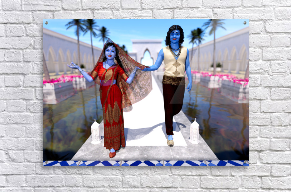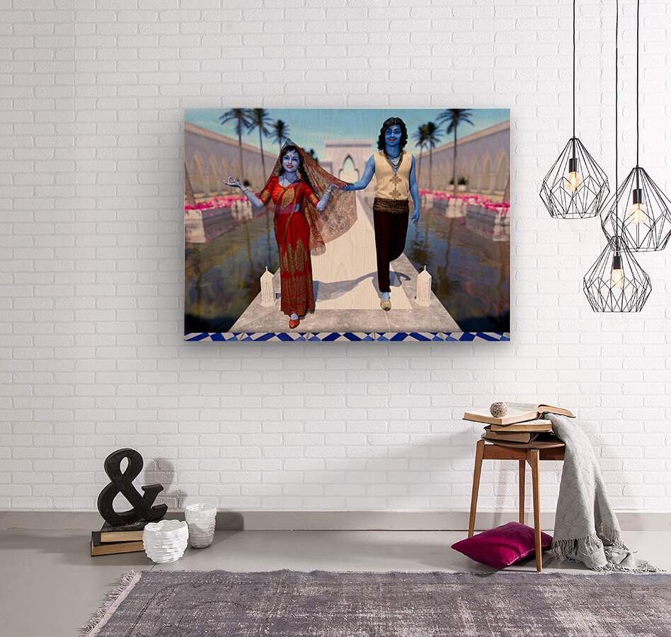 Get this artwork "Krishna and Radha entering the temple" in a framed print.