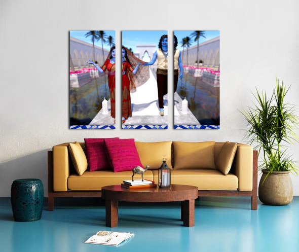 Krishna and Radha entering the temple Canvas print