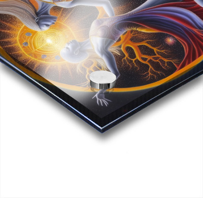 Printed to the edge - Ready to hang - provided with 4 premium polished aluminum stand off ( wall screws and mounting hardware provided )