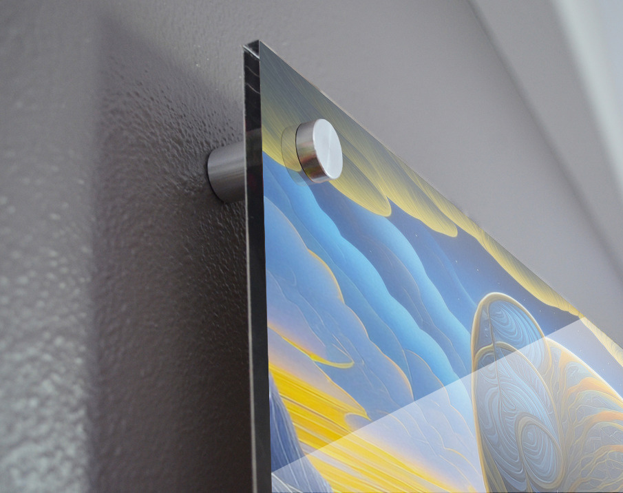 Impression sur acrylique avec entretoises ( cylindres métalliques )