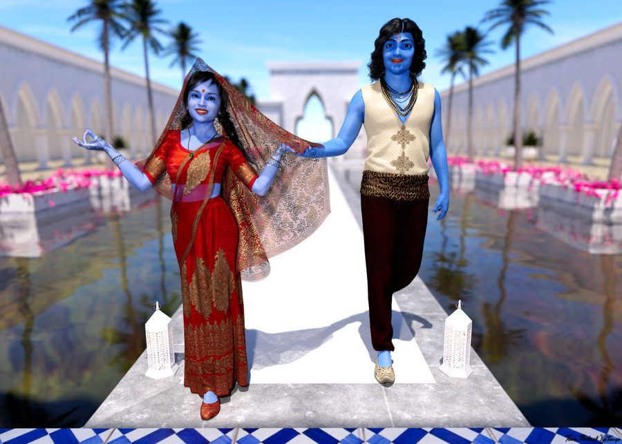 KRISHNA AND RADHA ENTERING THE TEMPLE