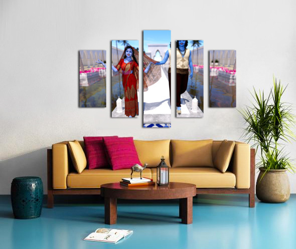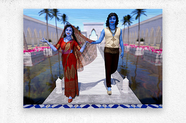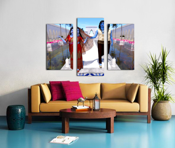 Krishna and Radha entering the temple Canvas print