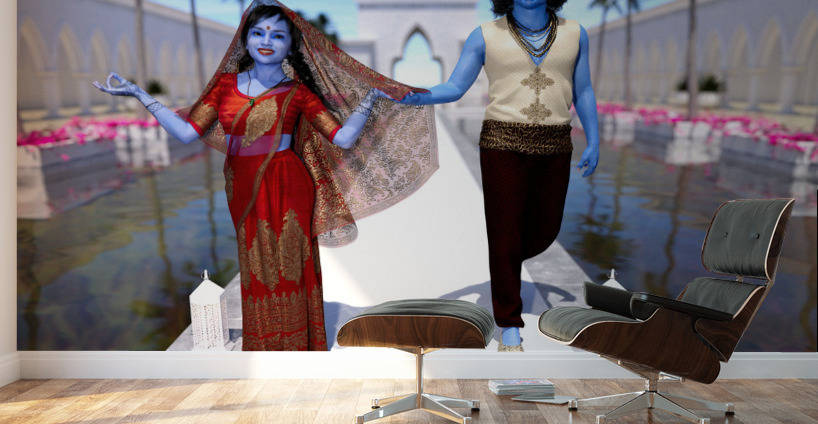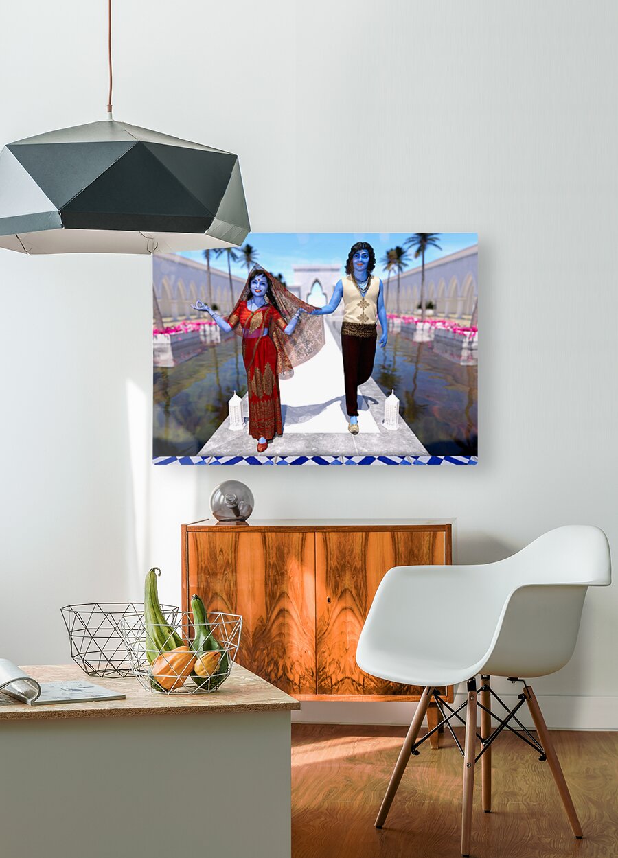 Get this artwork "Krishna and Radha entering the temple" in a framed print.